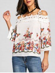 С цветочным принтом Плюс размер Кружевная вставка Футболка